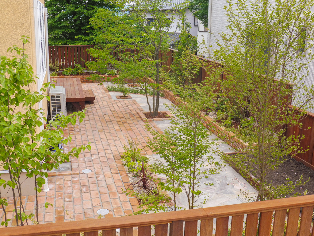 草花や木々とマッチした明るいモダンな自然庭へ。